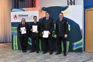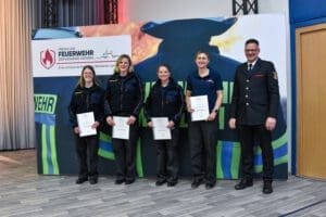Zur Feuerwehrfrauanwärterin / zum Feuerwehrmannanwärter wurden folgende Kameradinnen und Kameraden befördert: Jennifer Wegner, Sabrina Gisela Kreutzer, Wiebke Roth und Franziska Halbe