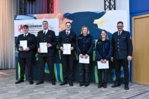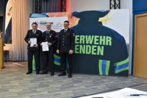 Zur Feuerwehrfrau / zum Feuerwehrmann wurden folgende Kameradinnen und Kameraden befördert: Finja Paffrath, Ole Simon, Max Solbach, Tim-David Valperz, Phillip Klose, Lars Stahl, Julia Knott, Jennifer Stock, Annika Steiger, Louis Quast, Louis Stefan Weitz, Colin Posekardt, Dr. Florian Zwanzig, Michael Sommer, Lars Clemens und Kelly-Oclay Nsengiyumva